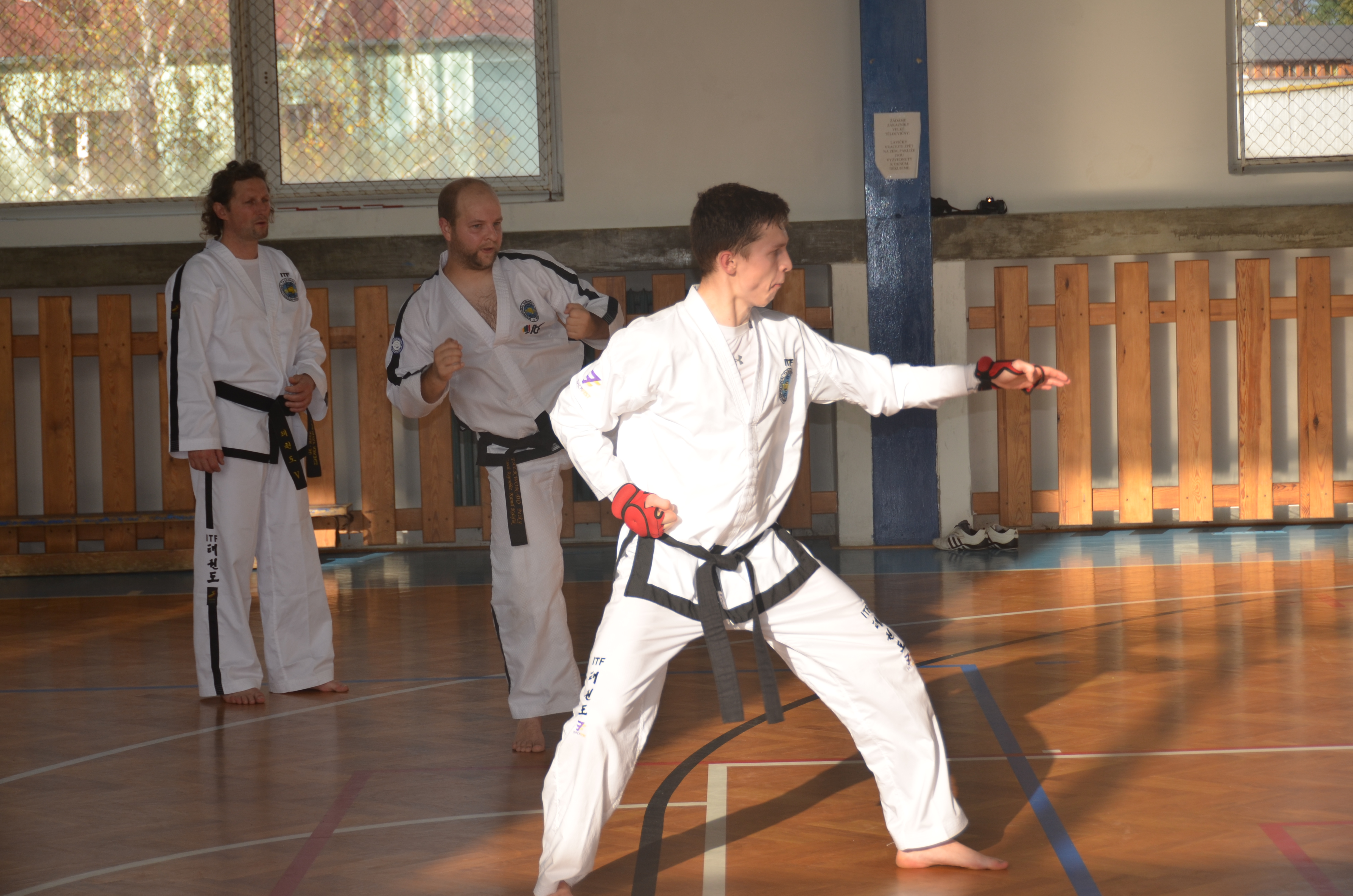 Následovalo procvičení základních technik v duchu aplikace teorie síly a každá jednotlivá technika byla probraná jak z hlediska parametrů, tak i z hlediska maximálního využití těla jako zdroje vytvoření energie pro techniku. Poté přišla na řadu sestava Chon-ji. U té také zůstalo, protože hlavní náplň semináře byla aplikace základních technik a to znamená samozřejmě matsogi. Sambo, Íbo, Ilbo matsogi, všichni víme, o co jde, takže netřeba detailně popisovat, to co všichni známe.