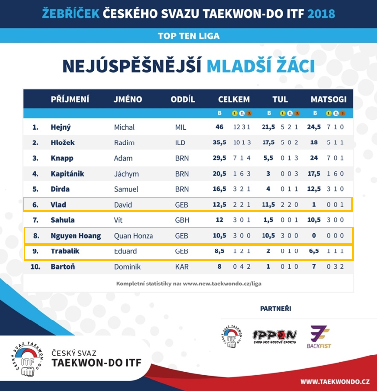 Za náš oddíl se v Top ten lize mezi deseti nejúspěšnějšími mladšími žáky v disciplíně TUL umístili David Vlad na 3. místě a Honza Nguyen na 4. místě.