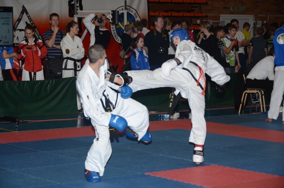 V 9:00 nástup do haly a v 10:00 už odstartovali první zápasy. Žáci a junioři jako první okusili zdatnost svých soupeřů, ale bohužel začátek závodů nezačal pro naše barvy moc dobře. V sestavách (tul) všichni naši taekwondisté nedokázali postoupit přes druhé kolo, a tak po dvou hodinách nemohl být šéftrenér Z. Vavruška V. Dan s jejich výkonem moc spokojen. Zanedlouho se měla ale karta obracet. Naše ostřílené juniorky začali jako první dokazovat kvalitu jak mladoboleslavského, tak i českého Taekwon-Do I.T.F a po stříbru K. Špytkové a